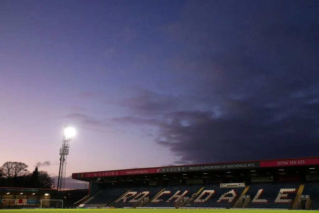 Context: Rochdale — or The Dale, as it's known — has had a rough few years. Its fans fought off a hostile takeover by two businessmen in 2021 (you might remember our long read on this), and last year the club was relegated from the English Football League for the first time in its history.
