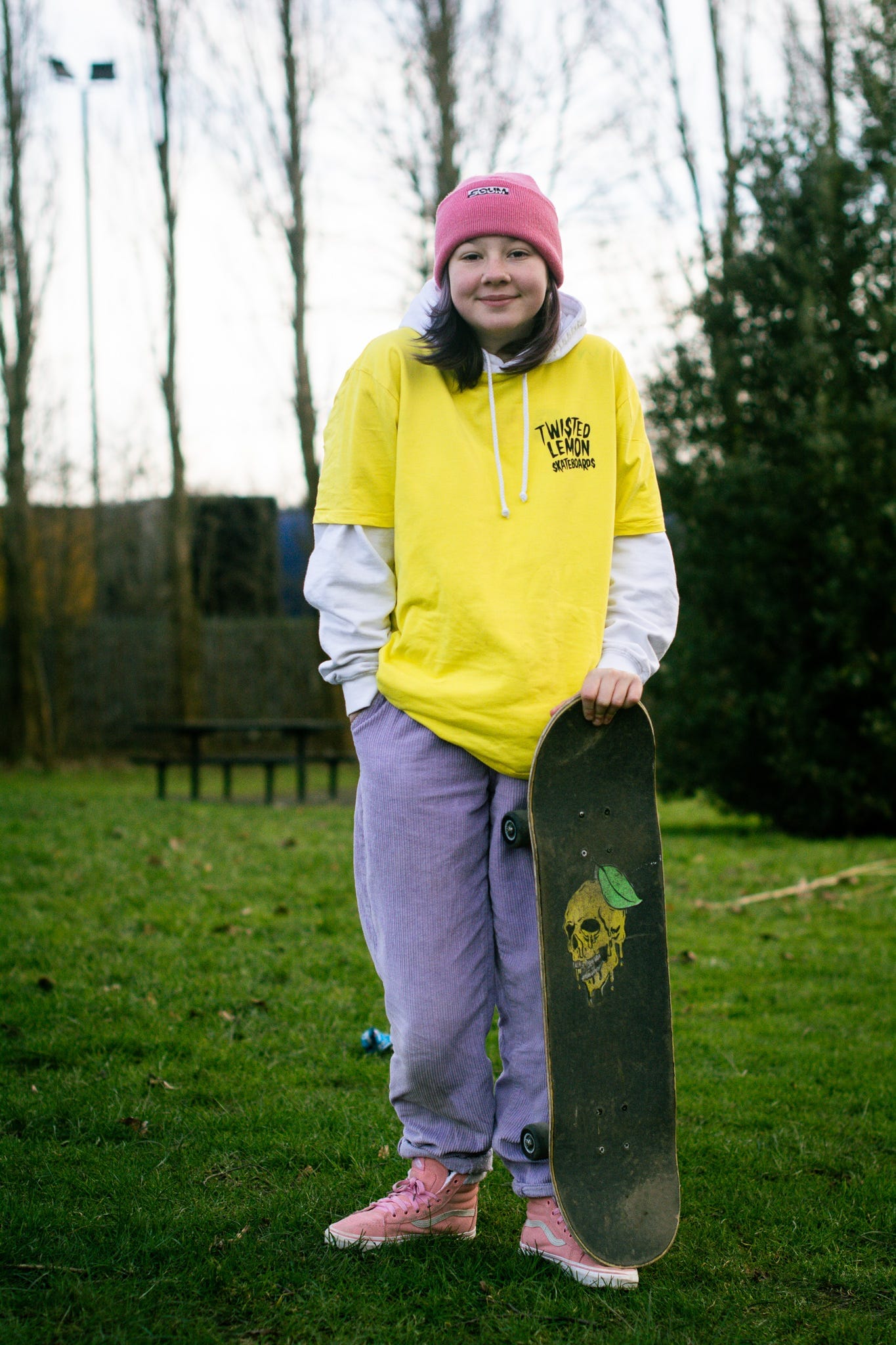 Pre-pandemic, Molly would skate up to five times a week at Projekts or Graystone, an action sports centre in Salford. “We’ve become adopted Mancs,” David says. She used to street dance but got “tired of it.” “It was a bit bitchy,” David chips in. “It was ultra-competitive, not nice.”