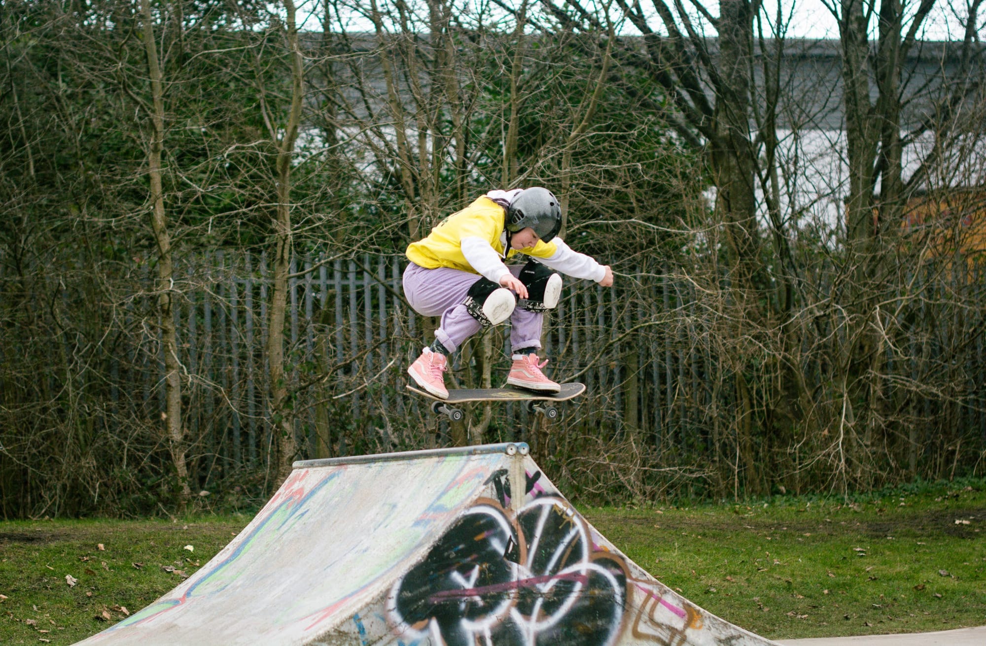 “Loads of other girls started skating during lockdown,” Charlotte says. There’s usually a good mix of people out — teenagers, parents, and little girls who are “just crazy good already.” They’re known as the Kamikaze Kids, because they bomb around so fast.