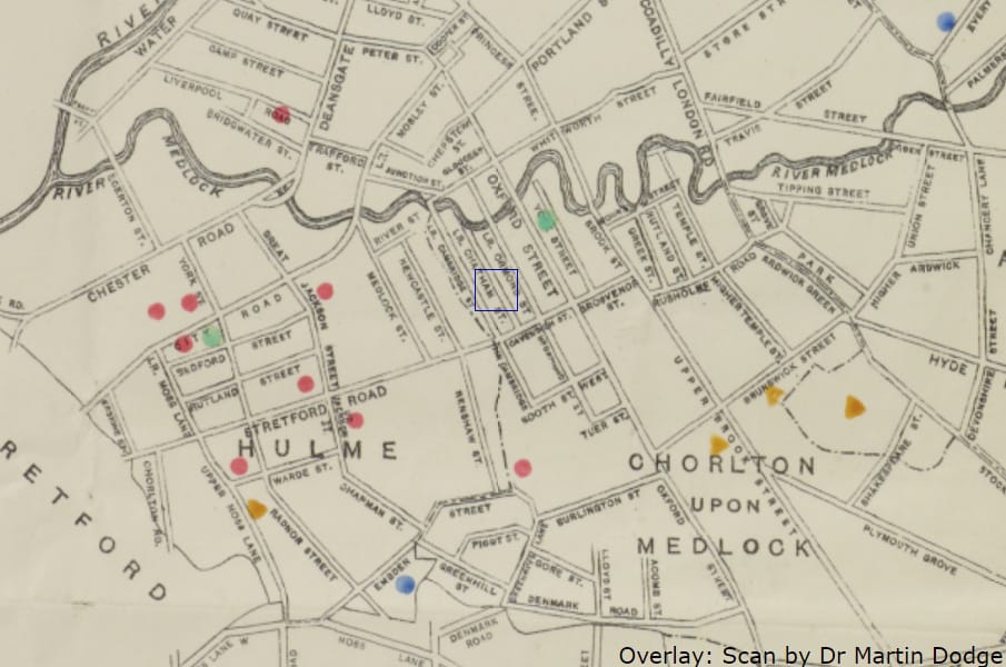 We love this site (thanks to the Reddit user who found it) which allows you to explore historic maps of Greater Manchester and overlay them on top of modern ones. The one above is the “diseases map” of 1905 — red dots are for scarlet fever and yellow ones are diphtheria.