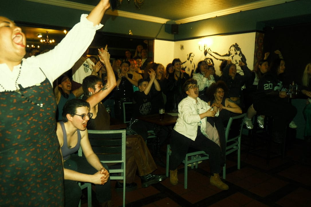 But arguably one of the most distinctive aspects of the event is that it’s public. Most venues and events here tend to draw clear lines between straight and queer groups — and that makes a certain degree of sense. After all, it is frustrating to chat up a straight girl camouflaged in dyke-dress (think: jorts, tatts, cap and carabiner) who’s just here for the vibes, rather than encounters with hot dykes. But there’s something that feels important about mixing with different groups. On one level, it’s just fun to bring together a group of dykes with the regular punters at a Joseph Holt pub — there’s the visual dissonance of it and it’s often clearly a surprise to the usual patrons, with the odd person staring over at the dykes with a mix of curiosity and confusion. But in a world in which dykehood can sometimes be invisible to those outside of the community, it feels exciting to be taking up space in the heterosexual world. This is a core part of the Diesel mentality: Julia explains “Diesel Dykes is about being unapologetically public. It’s not a secret, it’s about us taking over this space.”