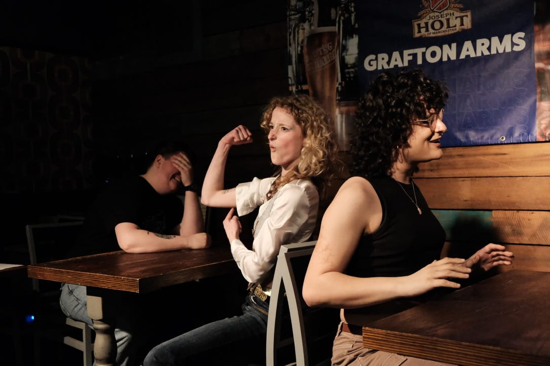 It’s Friday night and I’m walking into The Grafton Arms. On stepping inside, I’m confronted by psychedelically patterned carpet and a waft of sour Diamond lager. On one side is a familiar Joseph Holt’s scene: a small group of men, still in paint-stained cargos and boots, hunched over their pints by the TV, unenthusiastically watching the game. On the other is a sea of leather vests, skinheads, platform boots, chains, shagcuts and kinkwear; a swarm of dykes gathered around a table discussing the pressing issues of the day (everyone’s take on MILFS). Having just moved back to Manchester from London, I’m relieved to see this. The London dyke scene was a lot to leave but I’m glad to find that Manchester has come a long way in the six years I’ve been gone.