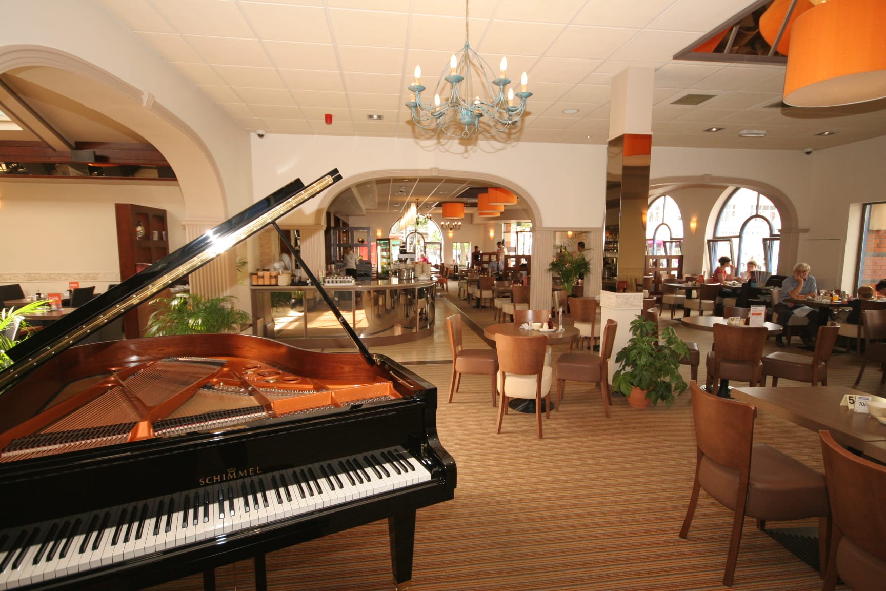 Olympus Fish and Chip Restaurant in Bolton is a lot of different colours, but the one that stands out is orange. The red brick cladding on the 160-cover restaurant isn’t really red at all, but orange. The lampshades are orange, and through them the light comes out orange, making everything it touches orange too. The battered fish, like all battered fish, is orange, and the restaurant even has an orangery, and a great big grand piano with a piano-wing raised to reveal piano-innards: piano-orange. I arrive at 8.55, minutes before the coach is set to head off. Tasos Pattichis, the 65-year-old owner, is bouncing around his restaurant, flirting mechanically with the 30 or so white-haired ladies that make up most of his current clientele. Eventually he spies me by the till, an outlier among his usual demographic. “Are you coming on the tour?” he asks, eyes bright with mock bewilderment. “God help you.”