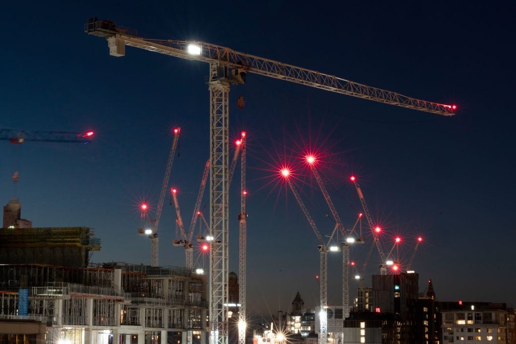 If winds pick up while an operator is in a crane, it’s best practice to release the brake mechanism, point the crane downwind and essentially turn the structure into a massive weathervane. Once winds hit 40mph, like in Monday’s storm — which was strong enough to uproot trees and paralyse transport networks — a crane cannot legally operate.