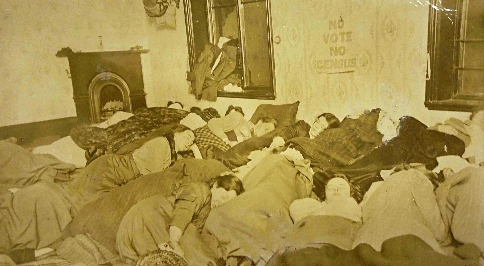 Hyland’s other house on Conyngham Road was used and Rose stayed there along with 77 women and 11 men. At Denison House, which was nicknamed “Census Lodge”, 155 women and 52 men spent a night with Stephenson which was filled with debates, singing and dancing. The women were amicable to the police, who were served coffee, and to the press, who were given a tour of the house and took photographs.
