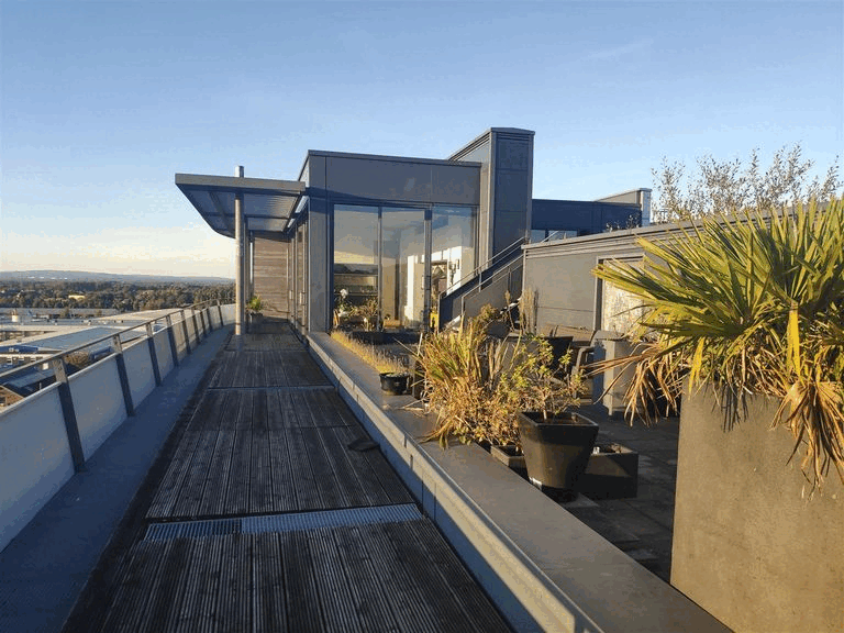 This Urban Splash apartment in Altrincham has three bedrooms, a south-facing roof terrace, and communal gardens that sit beside Bridgewater Canal. It’s on the market for £400,000.