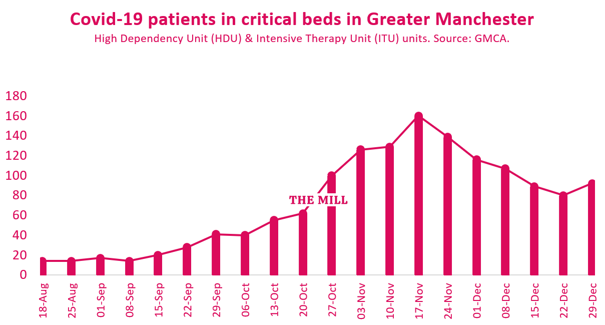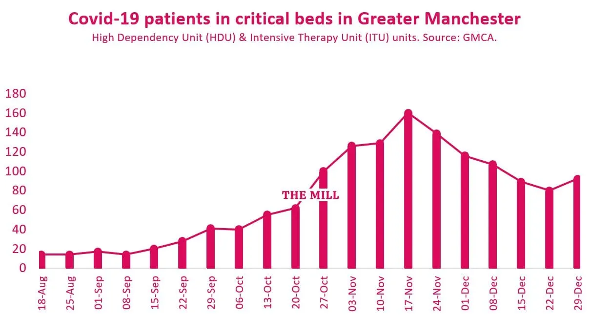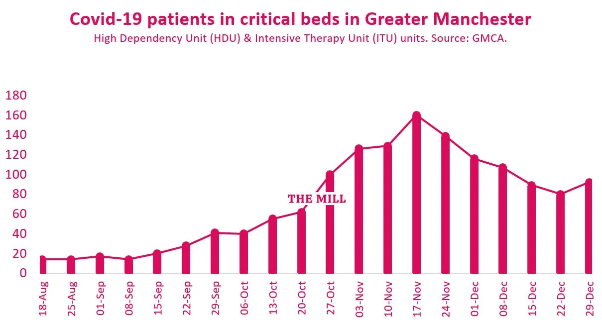The number to watch: Critical care. The number of Covid-19 patients in critical beds in GM just before Christmas had come down to half the peak we saw in mid-November - as you can see below. That was a huge relief.