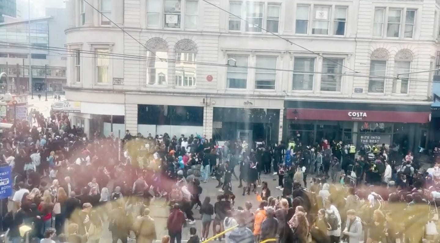 Context: It isn’t the first time this kind of incident has made headlines. Back in November, a group of around 700 children caused “chaos” outside the Arndale, with many drinking alcohol and blocking tramlines. At the time, Harpurhey councillor and senior Labour figure Pat Karney tweeted how lessons needed to be learned after these “intimidating” scenes.