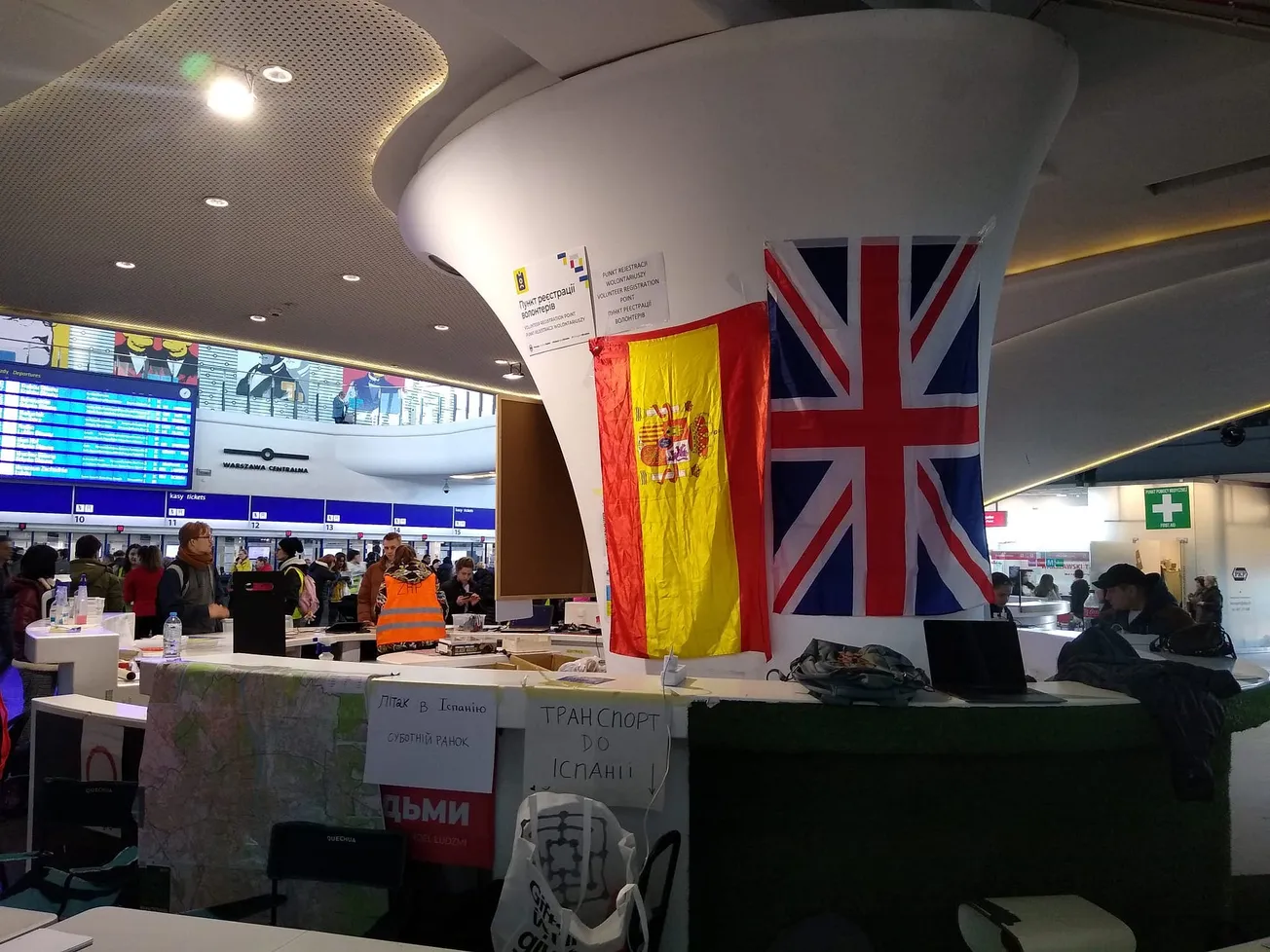 I'm standing in Warsaw Central Station wearing a bright yellow vest pinned with Russian and English language badges. Around 40 other volunteers add Polish, Spanish, German, and Ukrainian translation services, all in aid of the thousands of refugees still arriving from the Polish-Ukrainian border. I have only been here a few days and am told the station is less busy than it used to be, however, the work is still non-stop. Everybody here needs something.