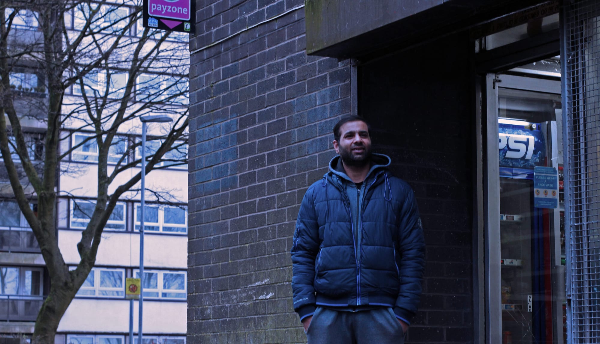 "This is what this building does to you," says Tahrir, their friend, who runs the shop and is also standing in the sheltered doorway, with Tentercroft extending above his head into the grey sky. "You get that angry with it," says Debbie, who says people have been ripping the copper boilers out. What was it like ten years ago? "Alright," says the woman who still lives in the block. "It weren't that bad." Tahrir points at the pedestrian area around us and up at the block. "All this place used to be busy man," he says, speaking passionately. "Every flat used to be out. Christmas trees from the bottom all the way to the top. Decorations, it used to be a beautiful time. Not anymore."