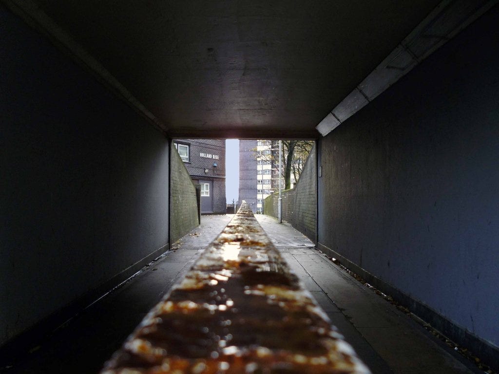 It's two weeks before Christmas, and a harsh December wind is blowing off the moors and slicing between the blocks and through my winter layers. Two women and a man are standing outside the tiny corner shop at the bottom of Tentercroft, which is one of the four blocks set to be demolished. "They left us living for a month without a main entrance door," says Debbie, who recently moved out of the Seven Sisters. "The homeless were living in the bottom," she says, "Oh it was awful."