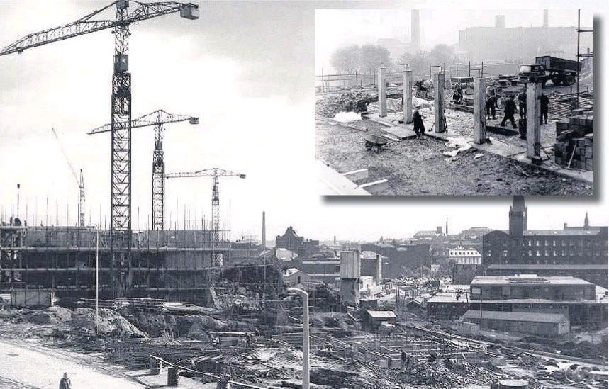"Housing experiment in a town's centre," reads the headline of a Guardian news story, published in October 1966. "Seven tall blocks of council flats, each with its own penthouse 'common room' for tenants' meetings and parties, have been built at Rochdale to bring life back into the town centre," the newspaper reports. The blocks were erected on a former slum area known as The Paddock and represented Rochdale’s step into modernity. "They have cost £3.5 millions, and have begun to attract families from all parts of the North-west,” the story says.