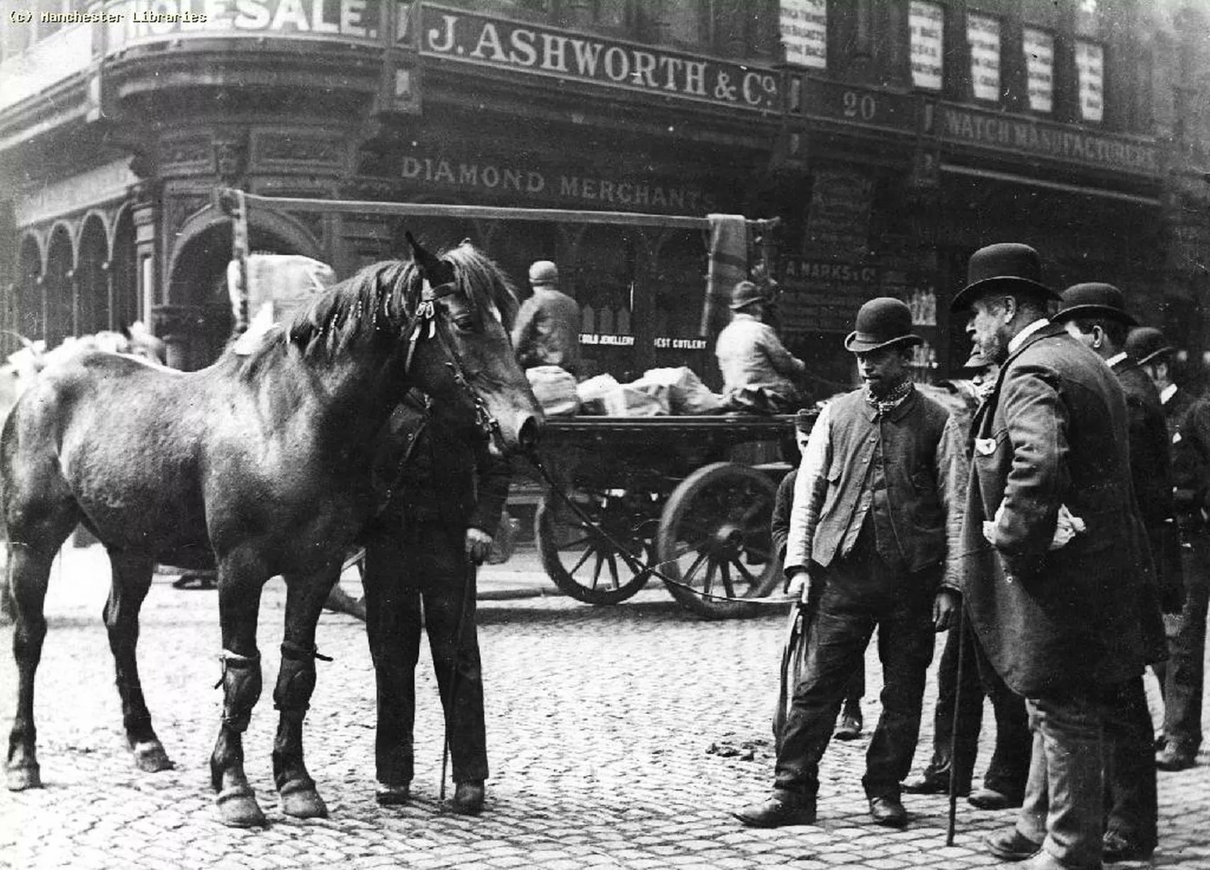 The Northern Quarter, 131 years ago. This is the corner of Thomas Street and High Street. Our guess is the photographer was standing outside what is now Wolf at The Door, a bar where you can dine on Korean fusion and bao buns. How things change! Many thanks to Brian Groom, a fastidious poster of historic photos of Manchester on X.