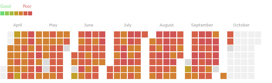 The website also uses a traffic light colour scheme to capture how bad the delays from any particular station are each day. Their assessment of Deansgate’s performance for the last six months is pretty bleak. (Don’t worry if you’re red-green colourblind, there’s no green on it).