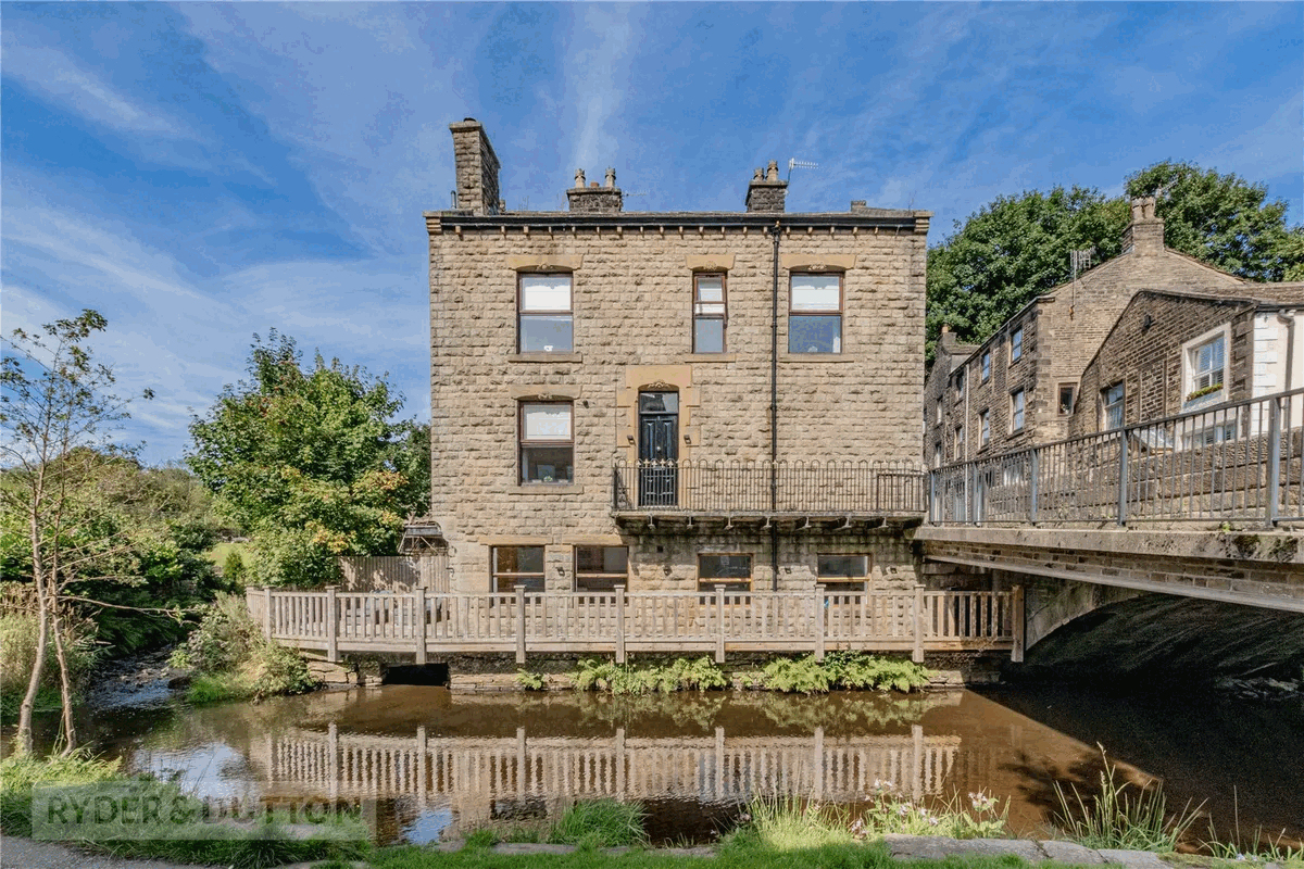 This beautiful stone house has a sweeping balcony that overlooks the River Tame and four bedrooms spaced over four floors. It’s situated in Delph village, a short walk from nearby wine bars and pubs. £435,000.