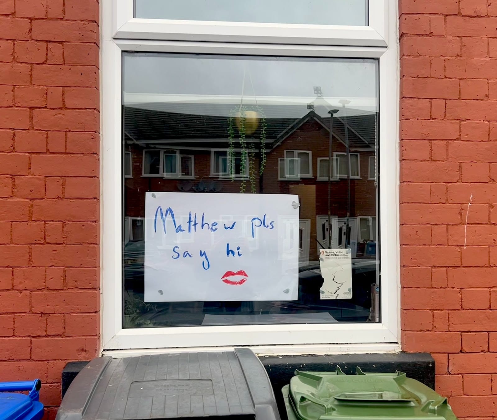 In the window of my rented Airbnb, on a residential street near the centre of Denton, I place a sign, with four thick lumps of Blu Tack. It reads: “Matthew pls say hi”. Then, for an extra flourish, I tear the cover from my copy of Value, Voices and Virtue – Matthew Goodwin’s 2023 takedown of the “new elite” – and add it to the window display. Then I prepare to wait.