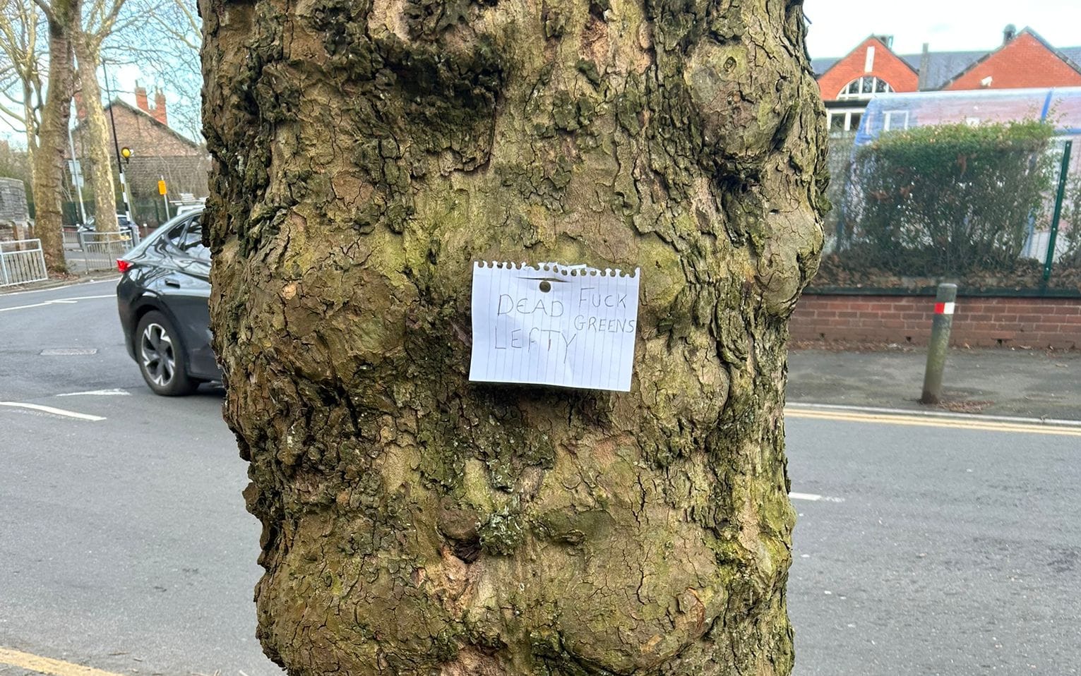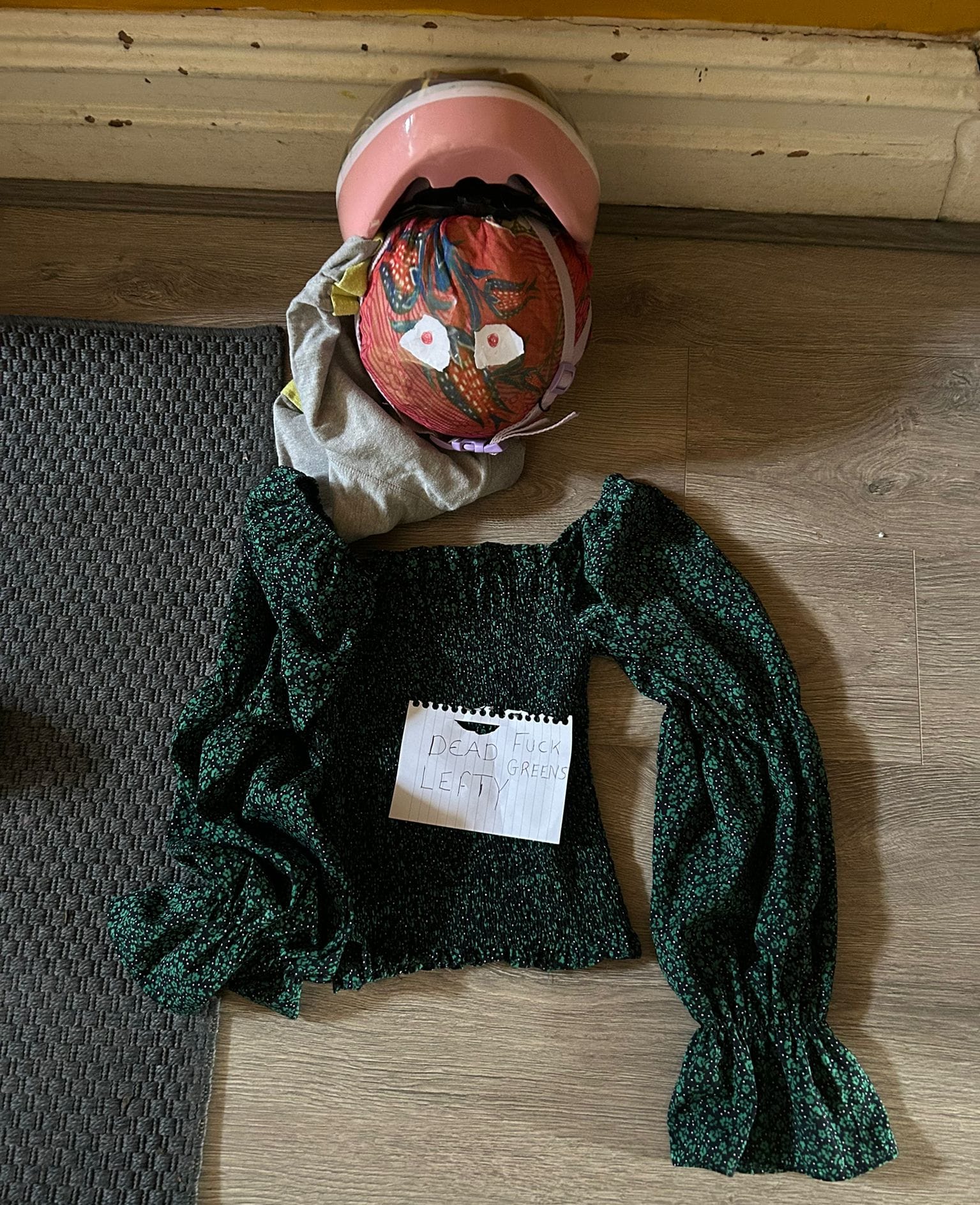 In another sign of the growing acrimony in this by-election,a reader in Levenshulme got in touch about a strange sight she’d seen in the streets — a doll constructed from a stuffed pair of tracksuit bottoms, a green blouse, and a football wearing a child’s cycling helmet. The doll was propped up against a tree across from Alma Park primary school, and above it was a sign that read: ‘Dead Lefty Fuck Greens’. Our reader dismantled the doll and reported it to the police. “It was particularly disturbing that they positioned it across from a primary school and that it was wearing a child’s cycle helmet,” she told us. “Also it was wearing women’s clothing and a pink girl’s helmet so it feels quite misogynistic too.”